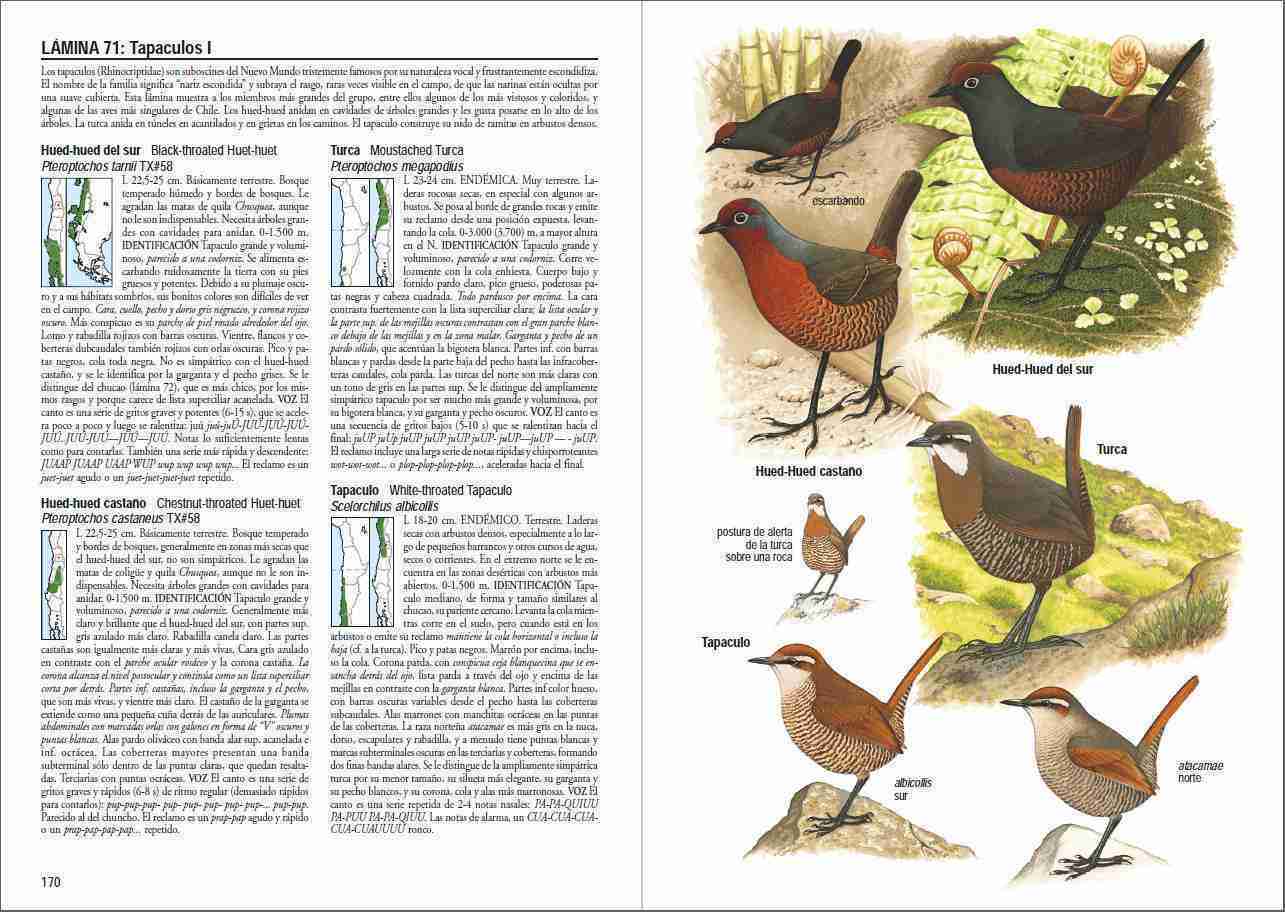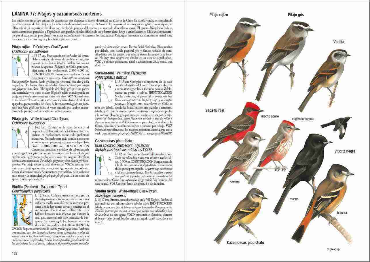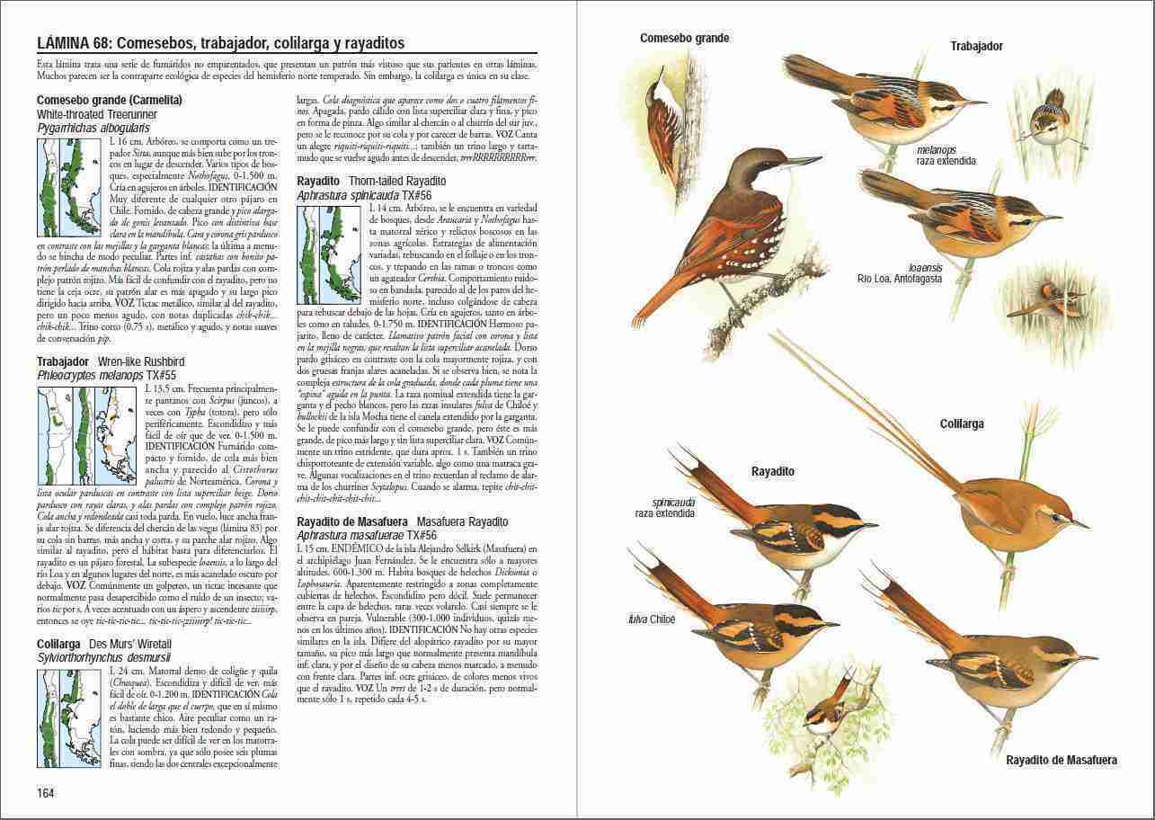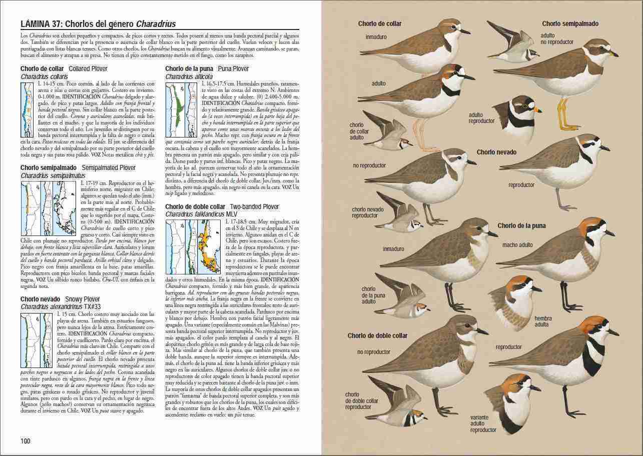 La versión en español de la guía de campo más completa y actualizada de las aves de Chile, que además incluye la península Antártica, las islas Malvinas y las Georgias del Sur. Edición revisada y actualizada por el propio autor, con las nuevas especies observadas desde la publicación de la edición original en inglés. Trata 475 especies, todas las nidificantes, las visitantes regulares y las accidentales. Incluye 96 magníficas láminas con ilustraciones a todo color, textos y mapas detallados.
