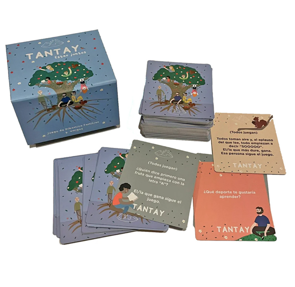 Tantay «Estar Juntos», es un juego de 150 preguntas, que tiene por objetivo reunir por medio del diálogo a familias, amigos o grupos que quieran compartir, reírse y jugar de una manera diferente.